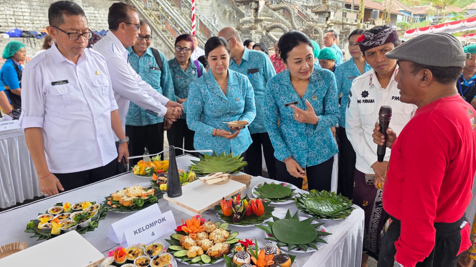 Sebagai penutup rangkaian kegiatan, rombongan TP PKK Provinsi Bali meninjau kegiatan demonstrasi memasak yang menghadirkan “Bali Chef Community” atau Perkumpulan Bali Chef Komunitas, yang diselenggarakan oleh Dinas Koperasi dan UKM Provinsi Bali di sebelah utara wantilan Desa Serai.