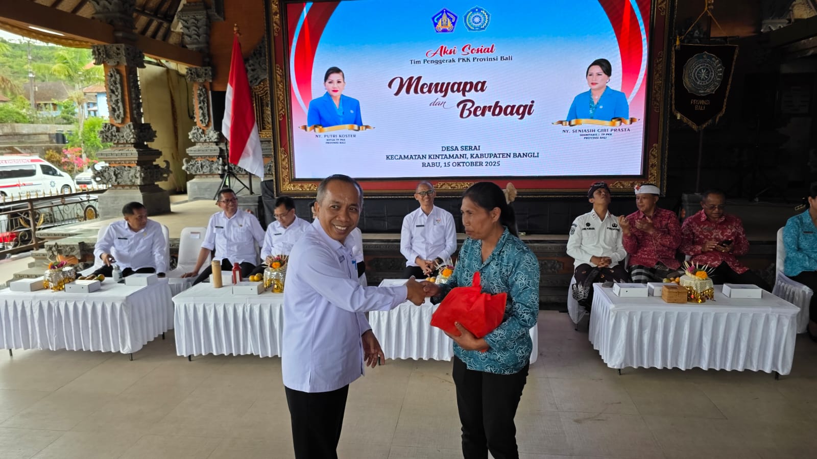 Puncak acara ditandai dengan penyerahan berbagai paket bantuan sosial sebagai wujud kepedulian pemerintah terhadap masyarakat. Secara simbolis, bantuan diserahkan kepada 50 penerima manfaat yang seluruhnya berasal dari Desa Serai, terdiri dari 10 lansia, 10 ibu hamil, 10 penyandang disabilitas, 10 kader PKK, dan 10 balita. Beragam bantuan diserahkan oleh masing-masing perangkat daerah, antara lain paket Gemarikan yang berisi olahan ikan seperti abon ikan, bakso ikan, ikan laut segar, dan lele siap goreng oleh Kepala Dinas Kelautan dan Perikanan Provinsi Bali; paket sembako untuk lansia oleh Kepala Dinas Sosial, Pemberdayaan Perempuan dan Perlindungan Anak Provinsi Bali; serta paket susu SGM Explor untuk balita dan Lovamil untuk ibu hamil yang diserahkan oleh Ketua PD IBI Provinsi Bali.